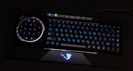 Это профессиональный манипулятор BTC/Emprex 9051H Cheetah для киберспортсменов. Главная особенность модели — поворотный блок с 17 программируемыми клавишами, куда вынесена WASD-группа. Второй заметный плюс — подсветка. Изменение цвета осуществляется автоматически в зависимости от интенсивности нажатия на клавиши, от синего в режиме ожидания до красного при оживлённой игре. Есть также функция Dynamic Lightshow, благодаря которой цвет подсветки меняется в такт музыке.