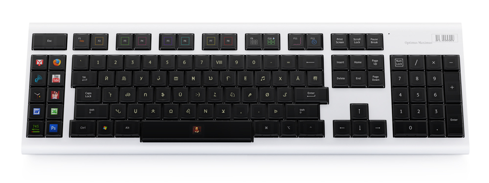 В клавиатуре «Оптимус» каждая клавиша является отдельным дисплеем, отображая именно то, чем она управляет в данный момент.